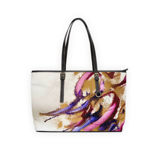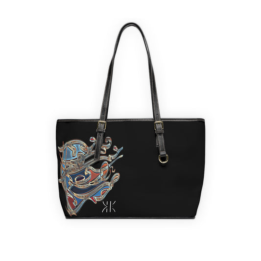 ' Elegant PU Leather Shoulder Bag with Artistic Calligraphy Design