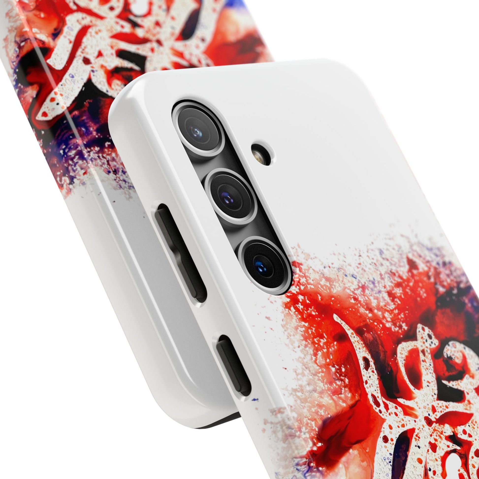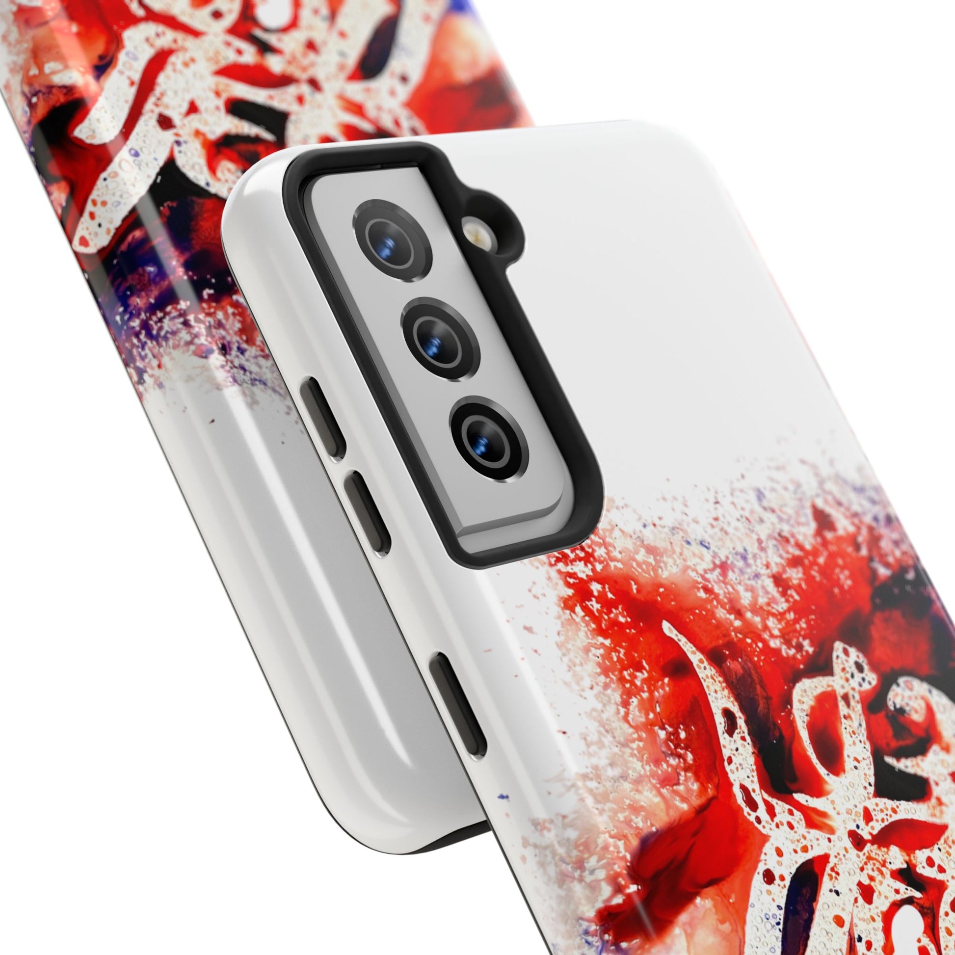 These tough phone cases are made with Lexan plastic for extreme strength and durability, with a lay-flat bezel to protect the screen. The flexible rubber liner absorbs shock from impacts, while the glossy finish adds a touch of style. Perfect for those looking for a sturdy phone case with a pop of color and artistry.