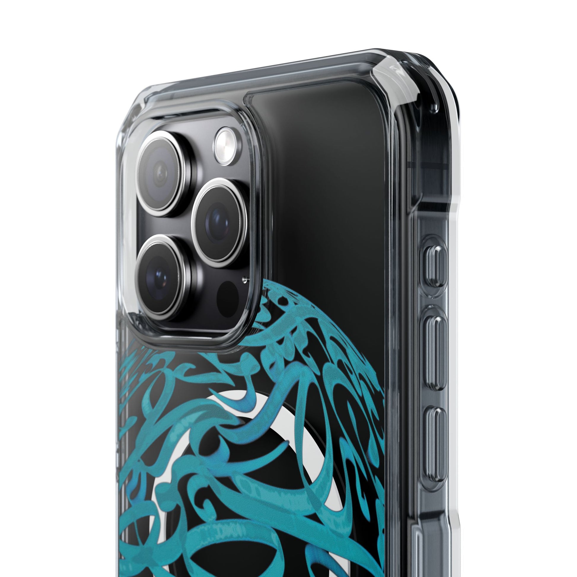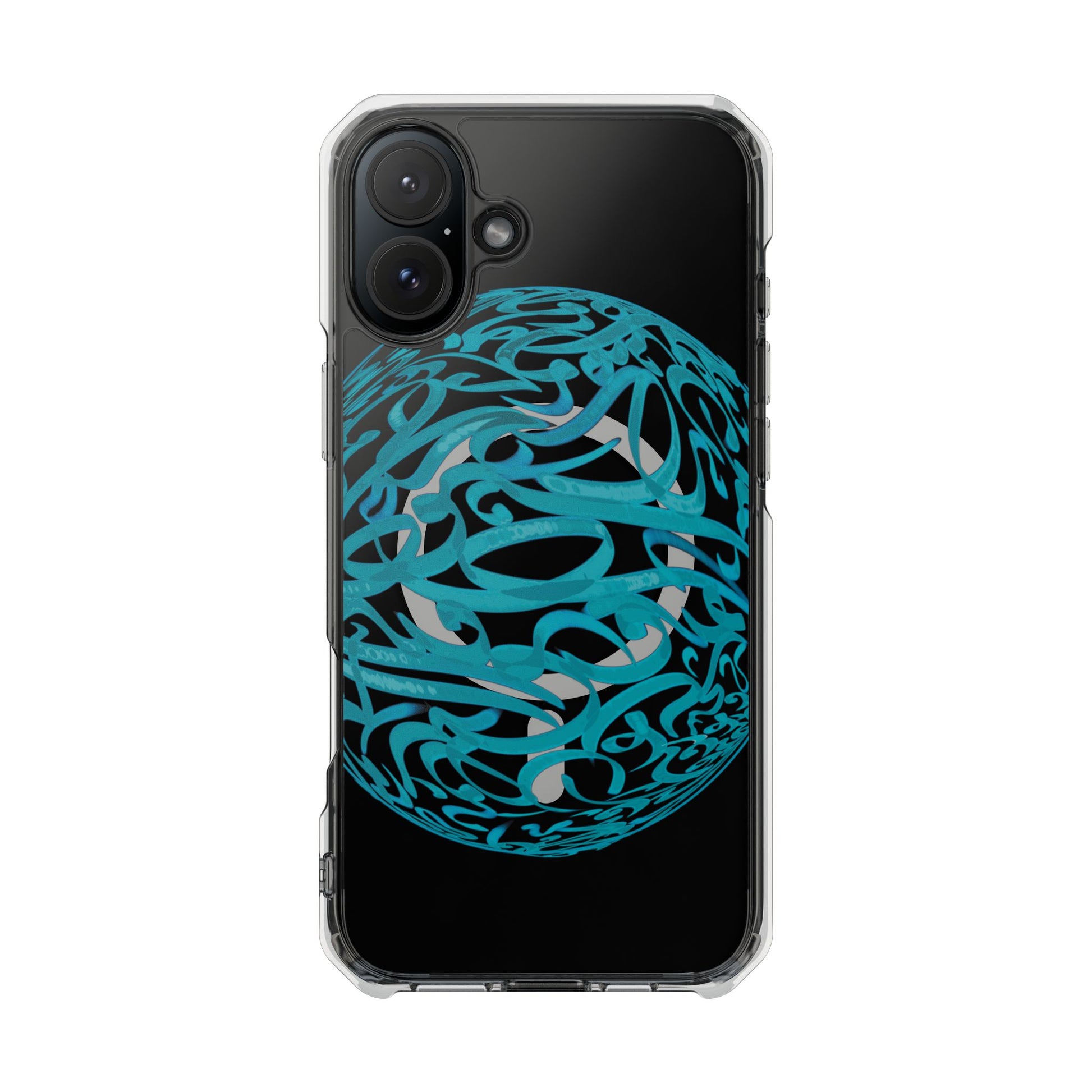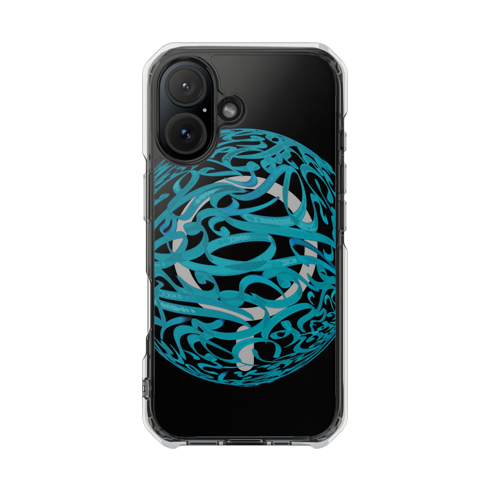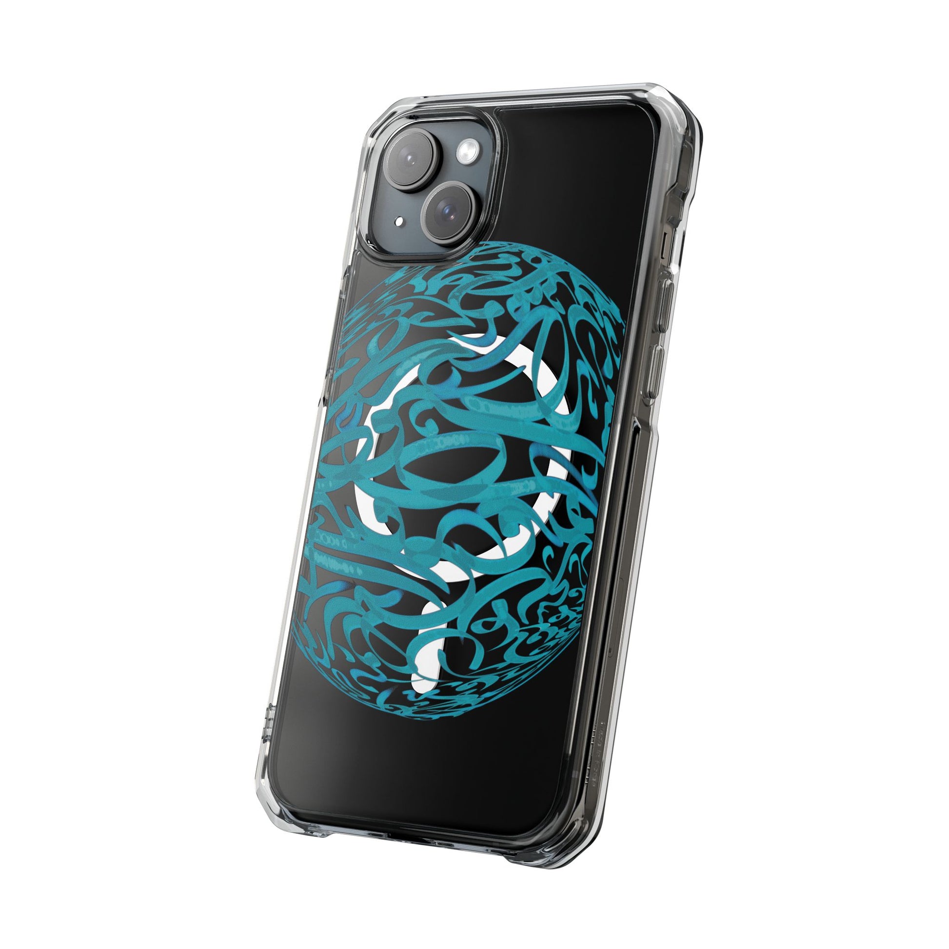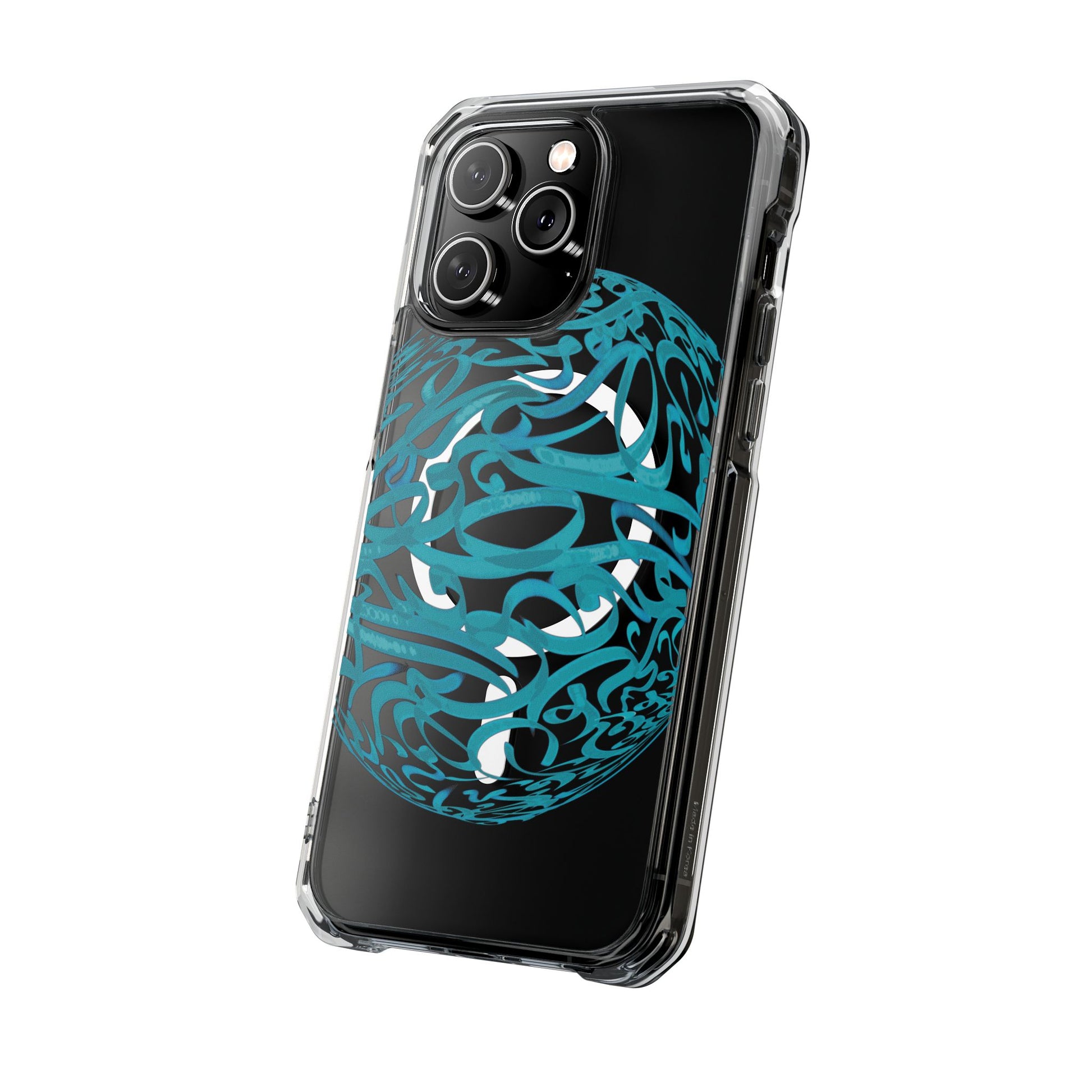 Vibrant and unique magnetic phone case with pink ribbon Persian calligraphy design. Provides elegant and subtle protection for your smartphone while also being MagSafe® compatible. Perfect for those looking for a stylish and functional case.