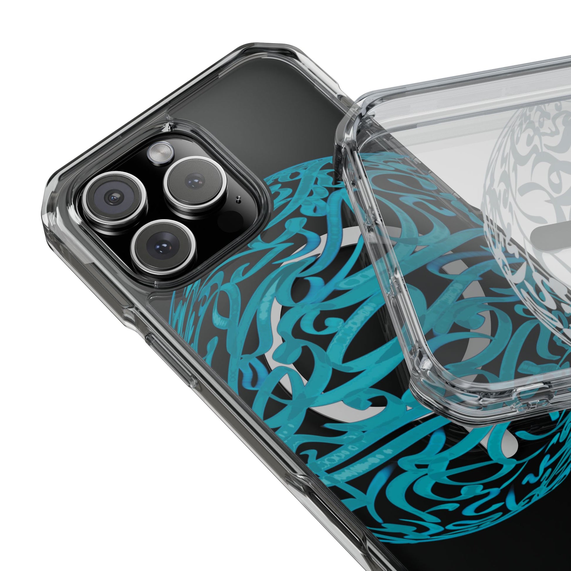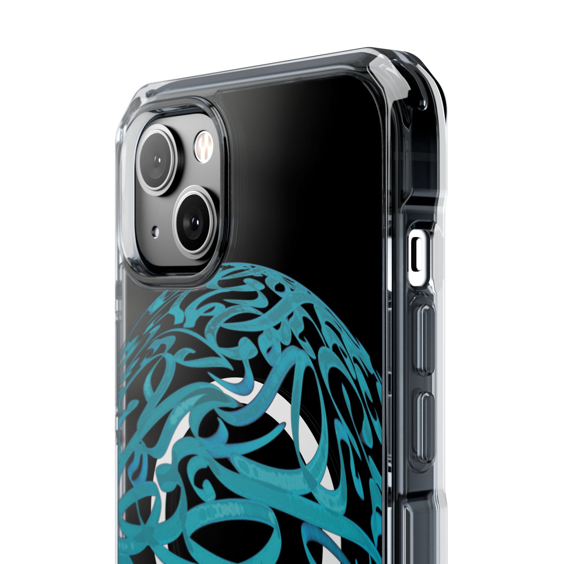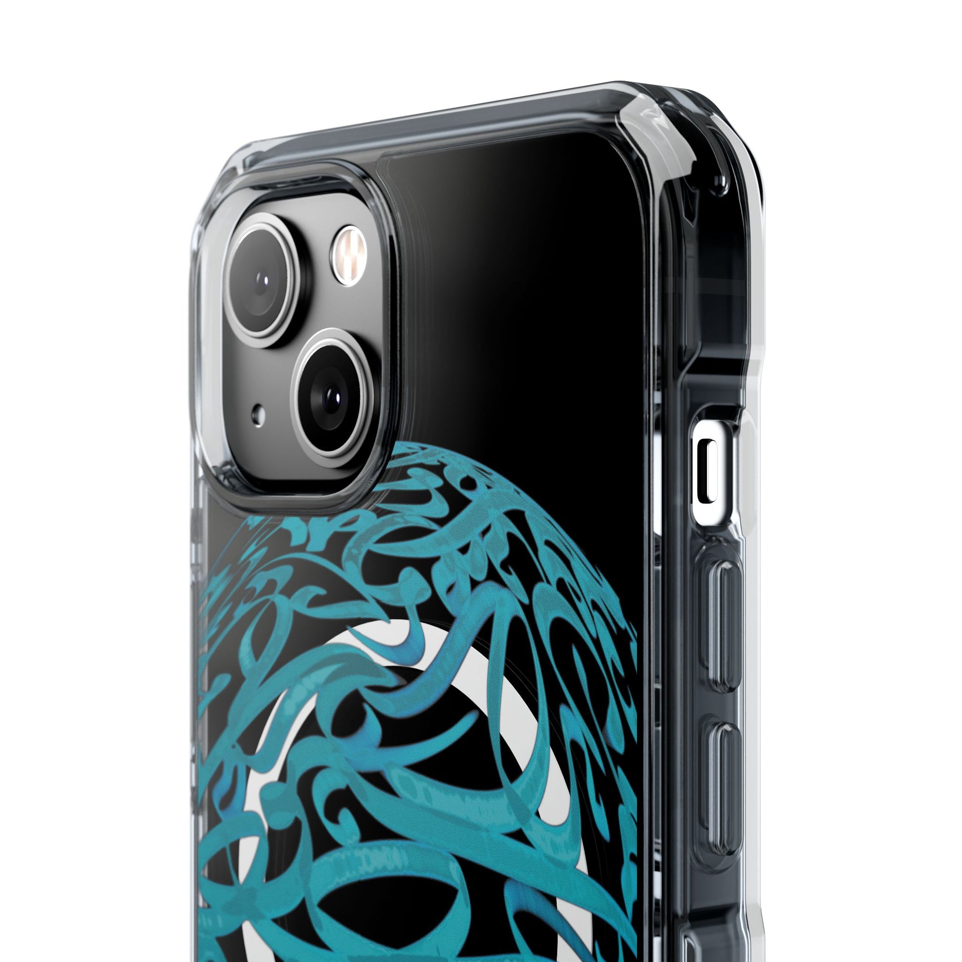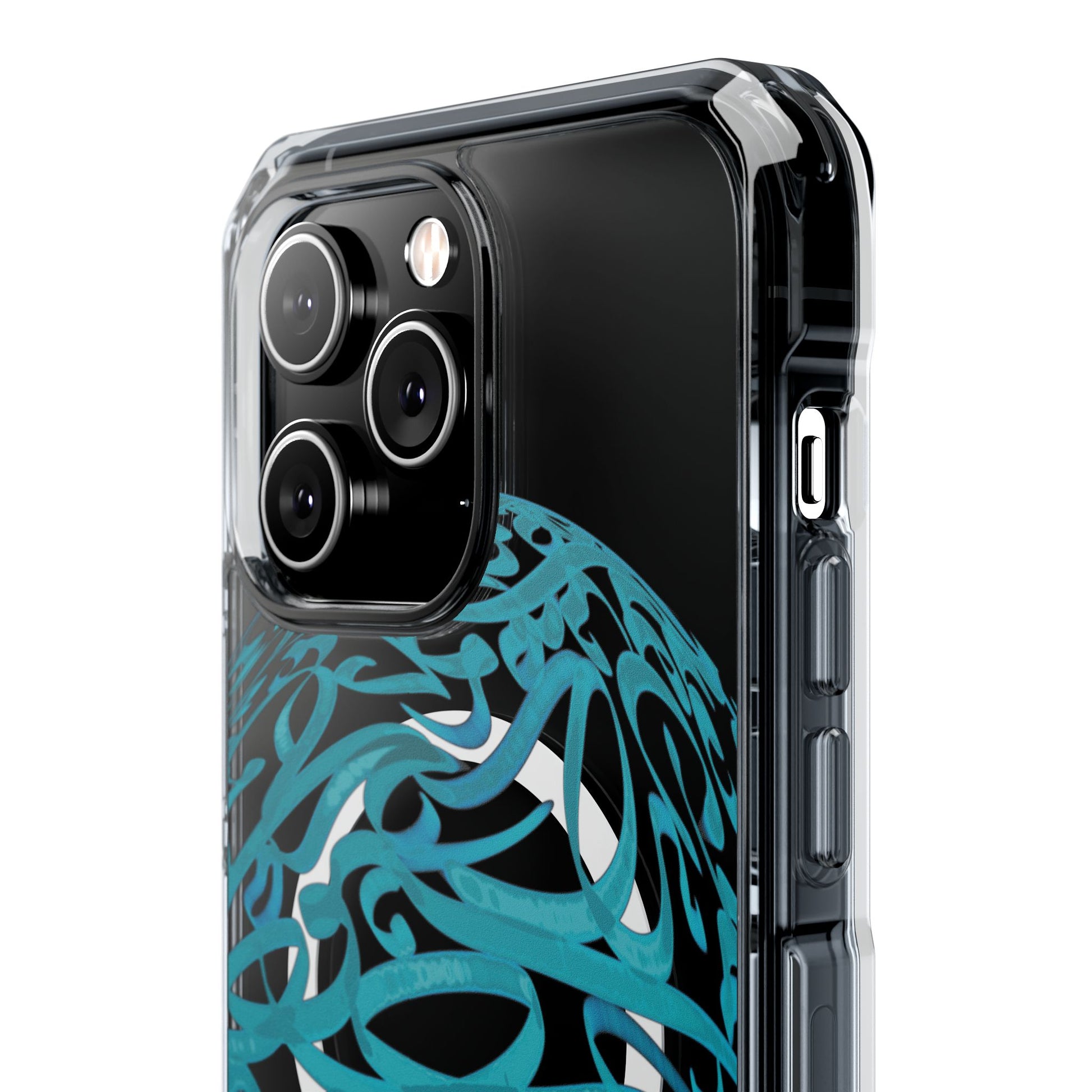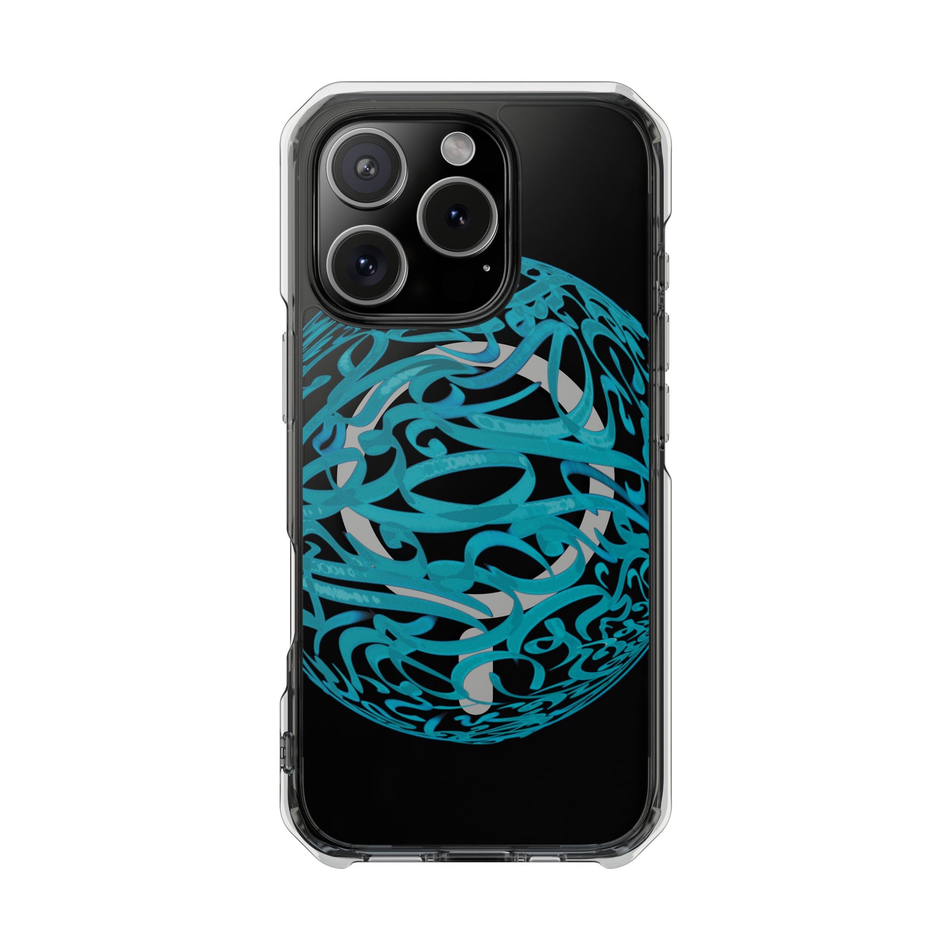 Vibrant and unique magnetic phone case with pink ribbon Persian calligraphy design. Provides elegant and subtle protection for your smartphone while also being MagSafe® compatible. Perfect for those looking for a stylish and functional case.