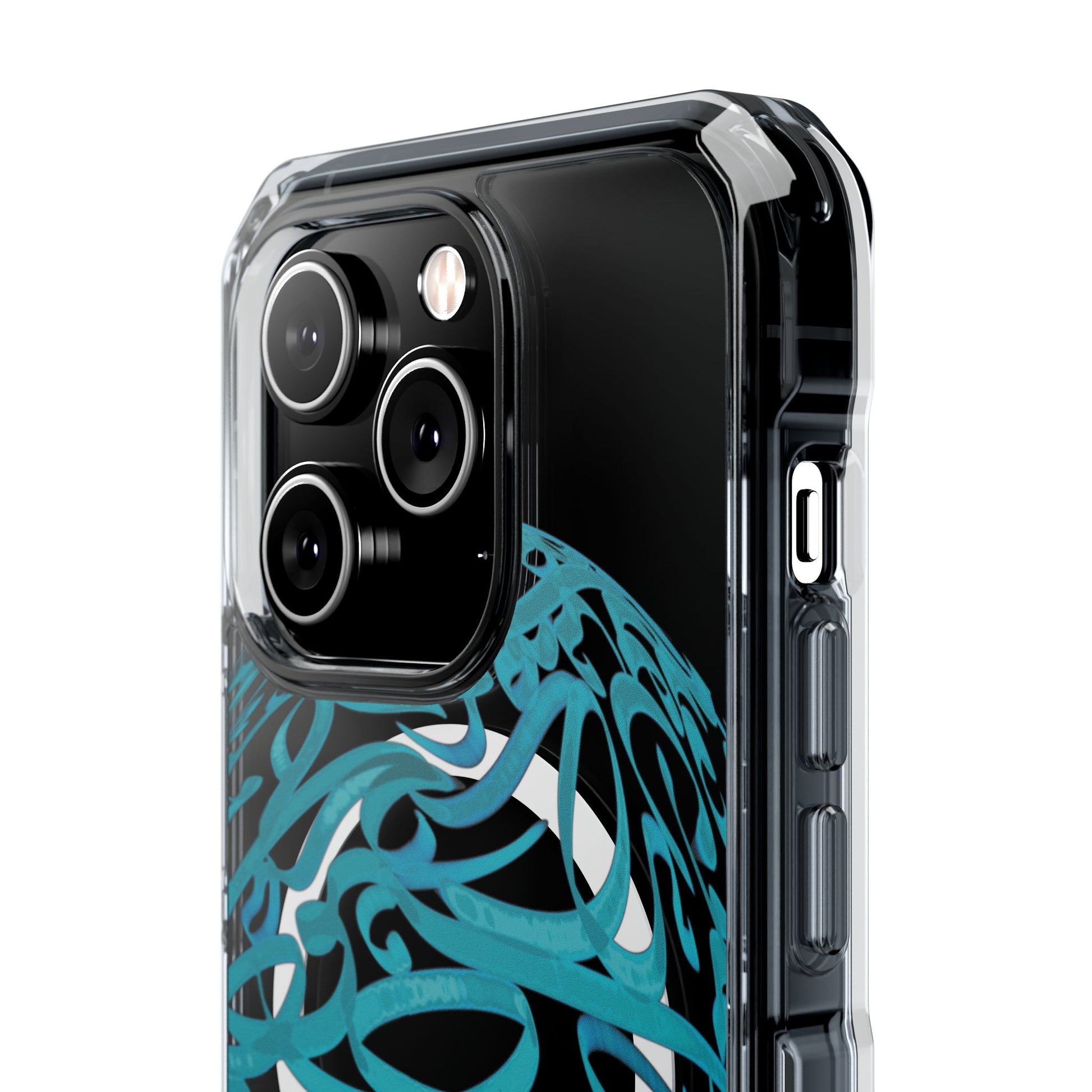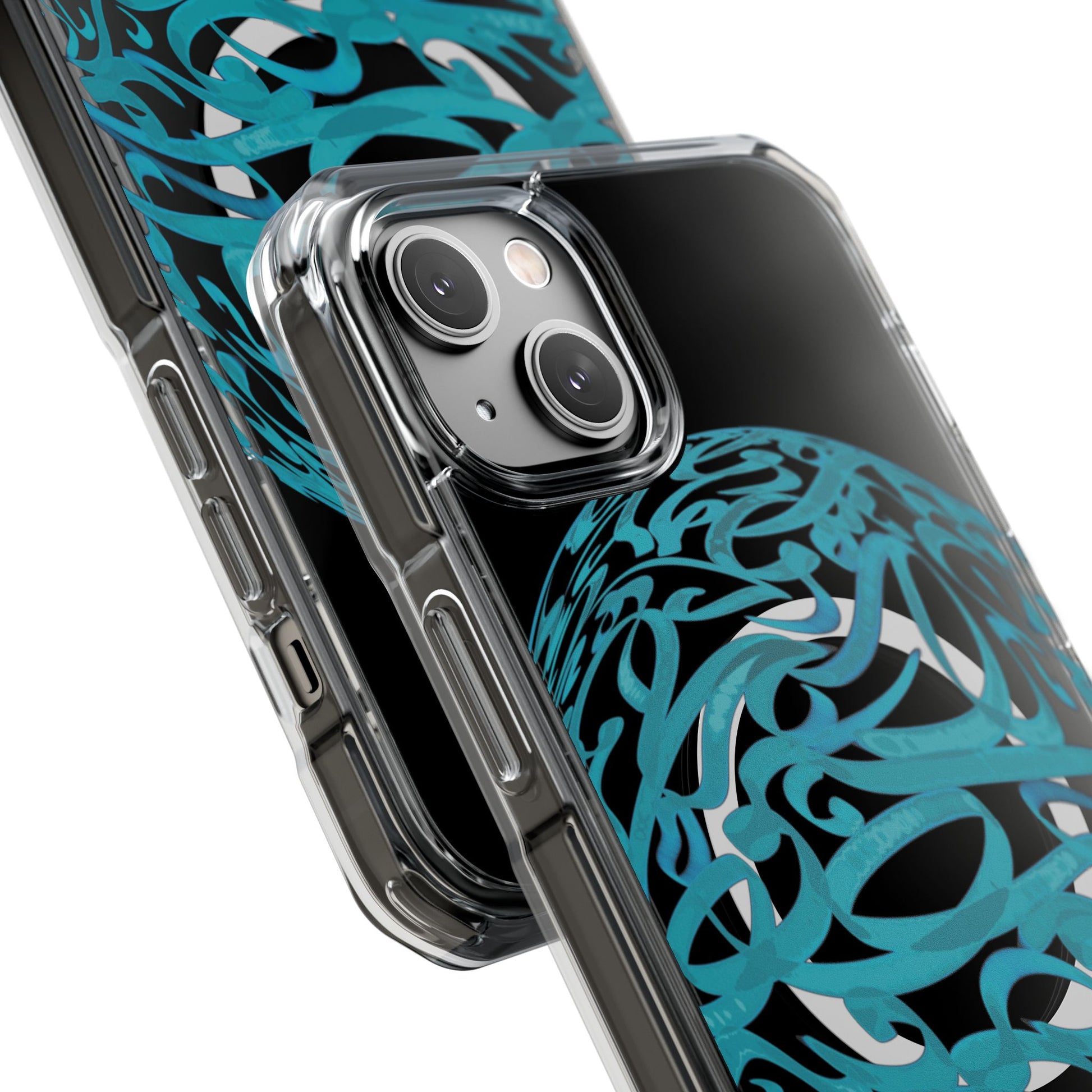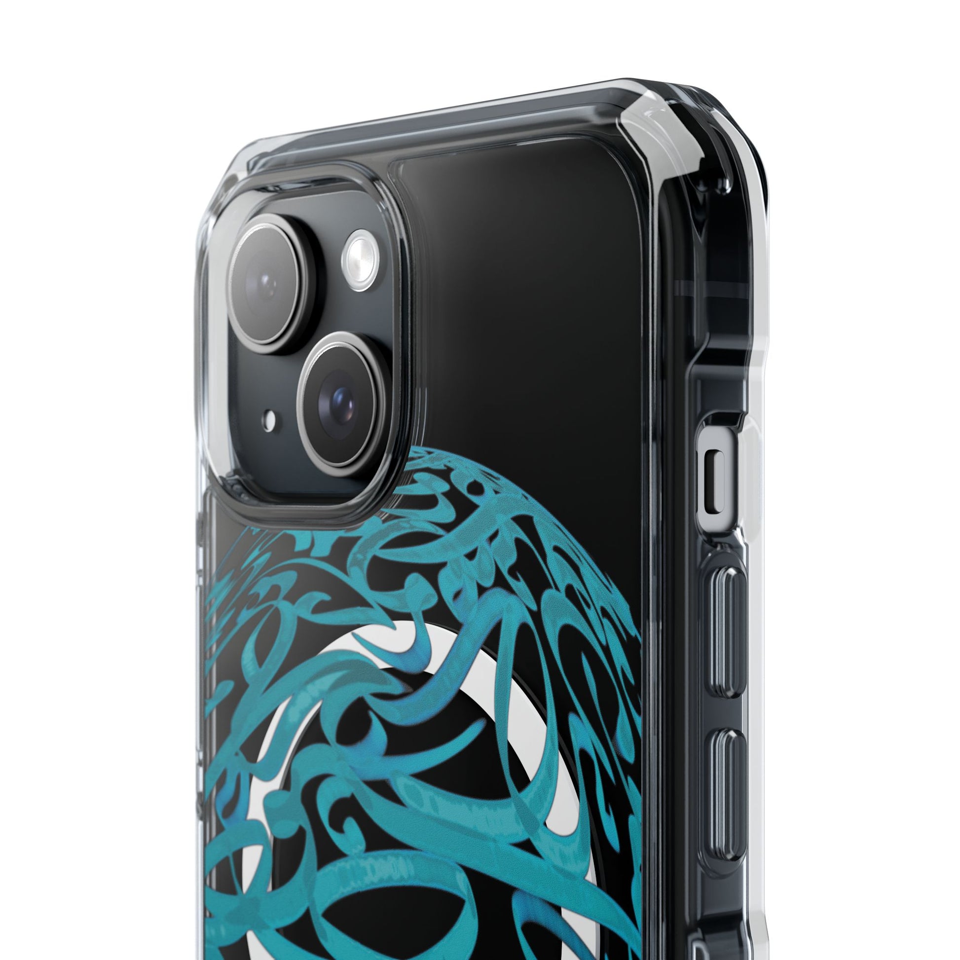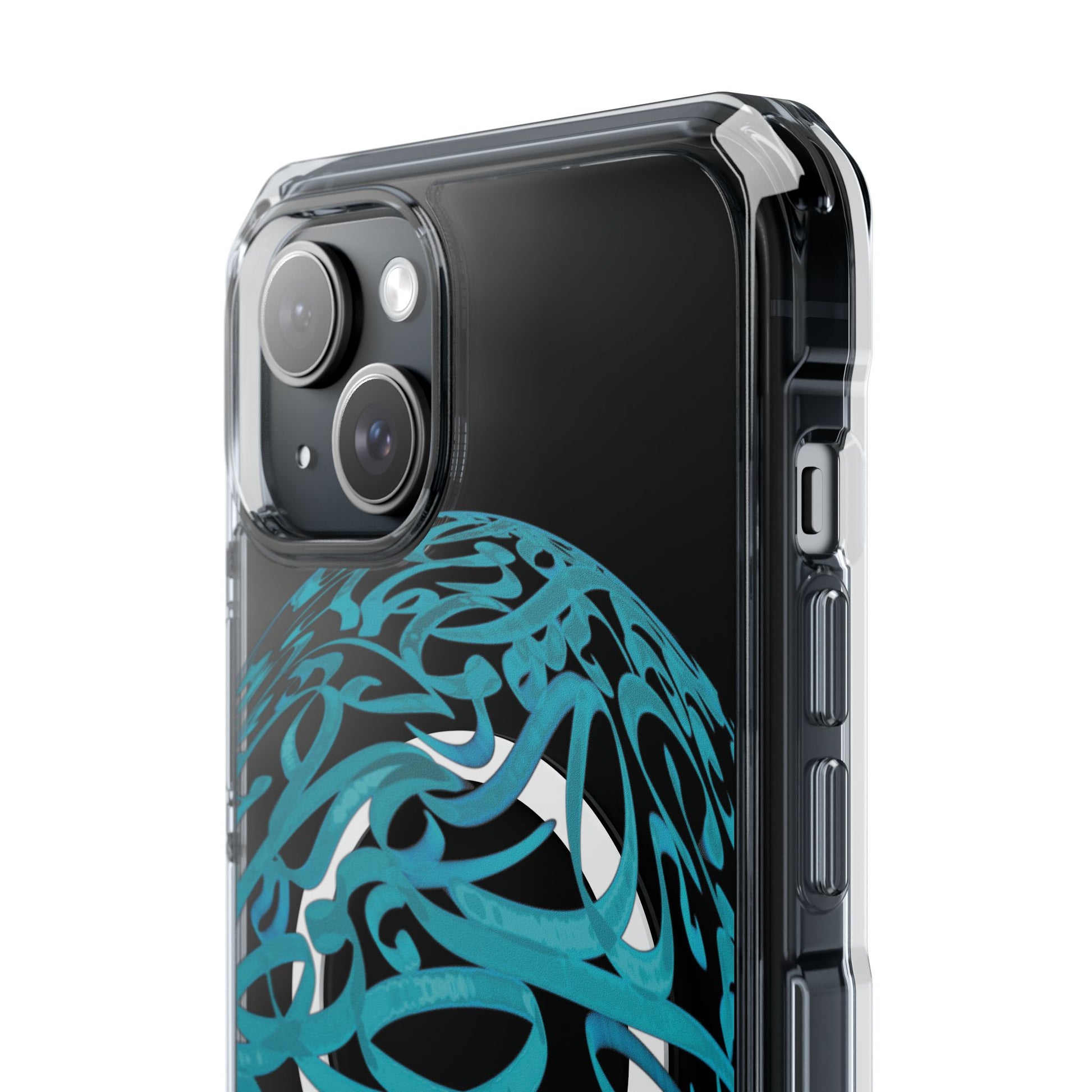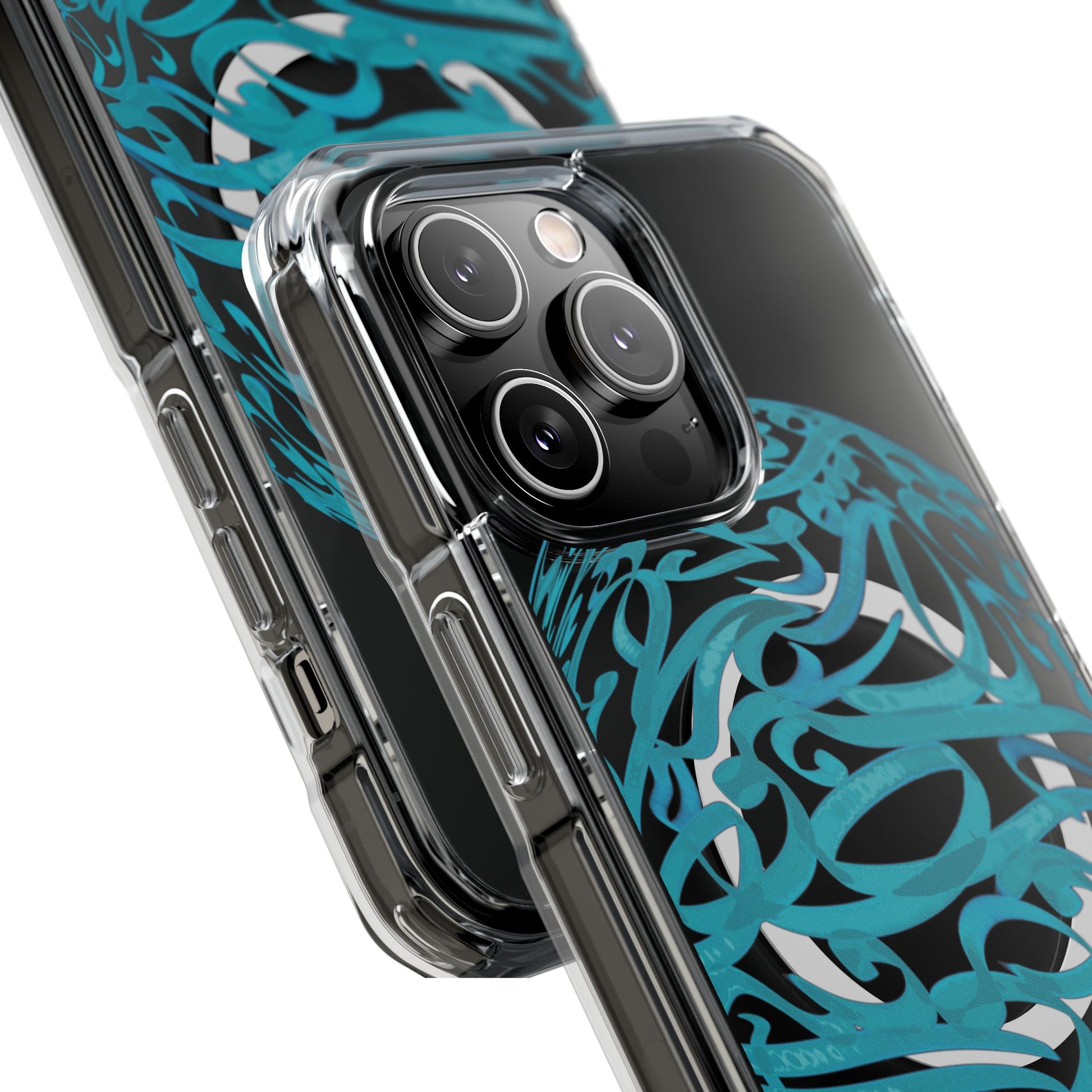 Vibrant and unique magnetic phone case with pink ribbon Persian calligraphy design. Provides elegant and subtle protection for your smartphone while also being MagSafe® compatible. Perfect for those looking for a stylish and functional case.