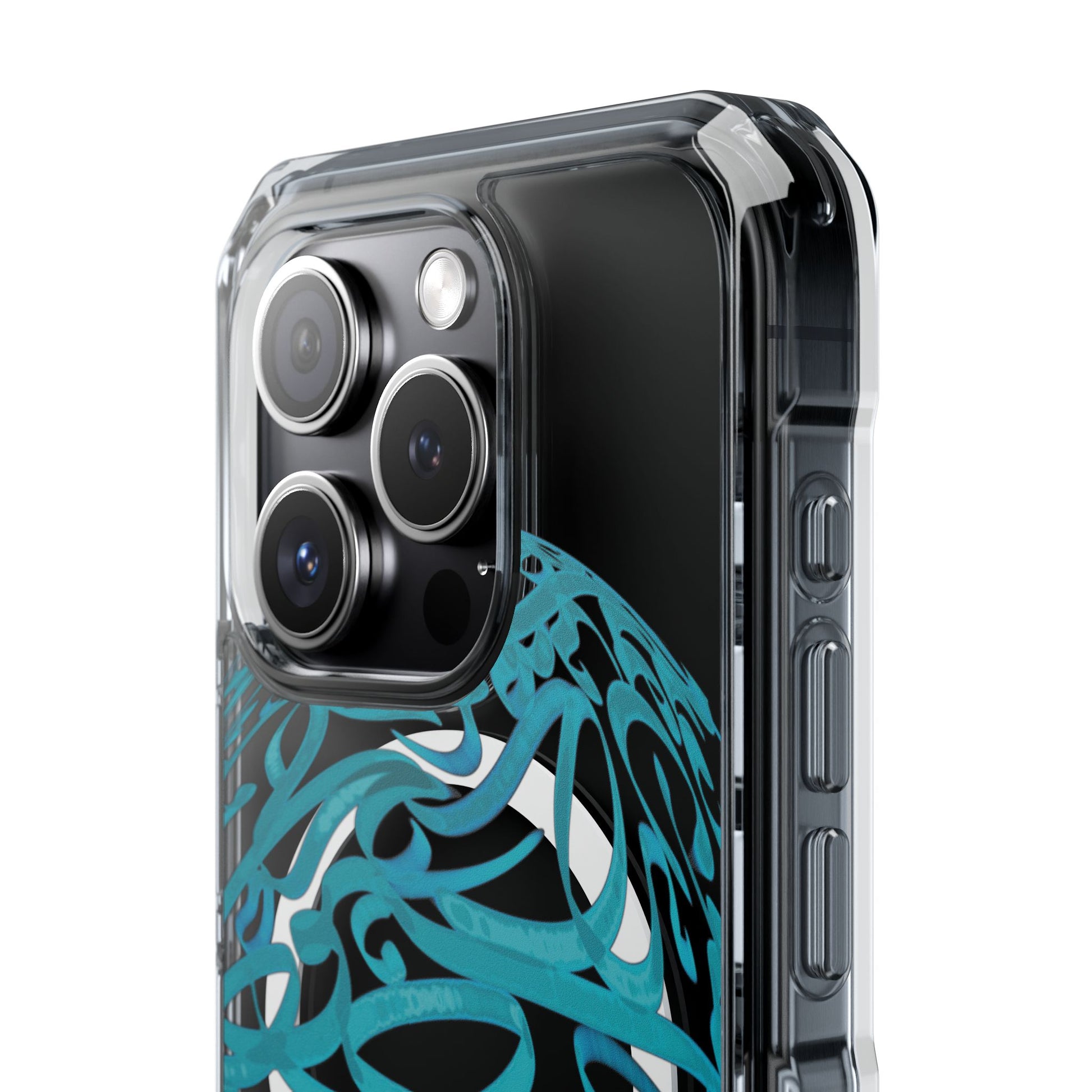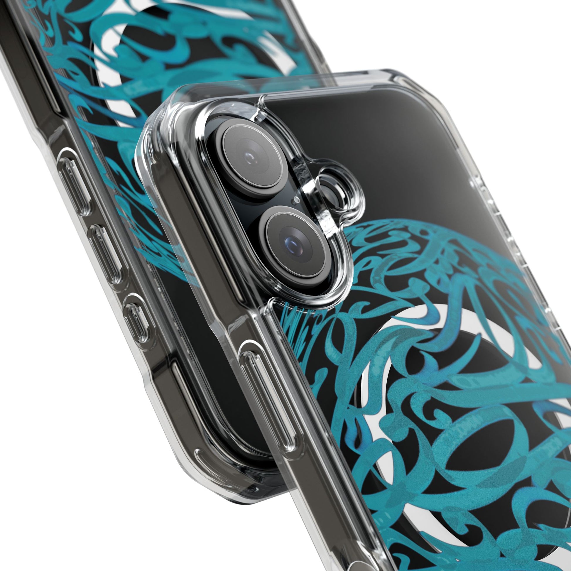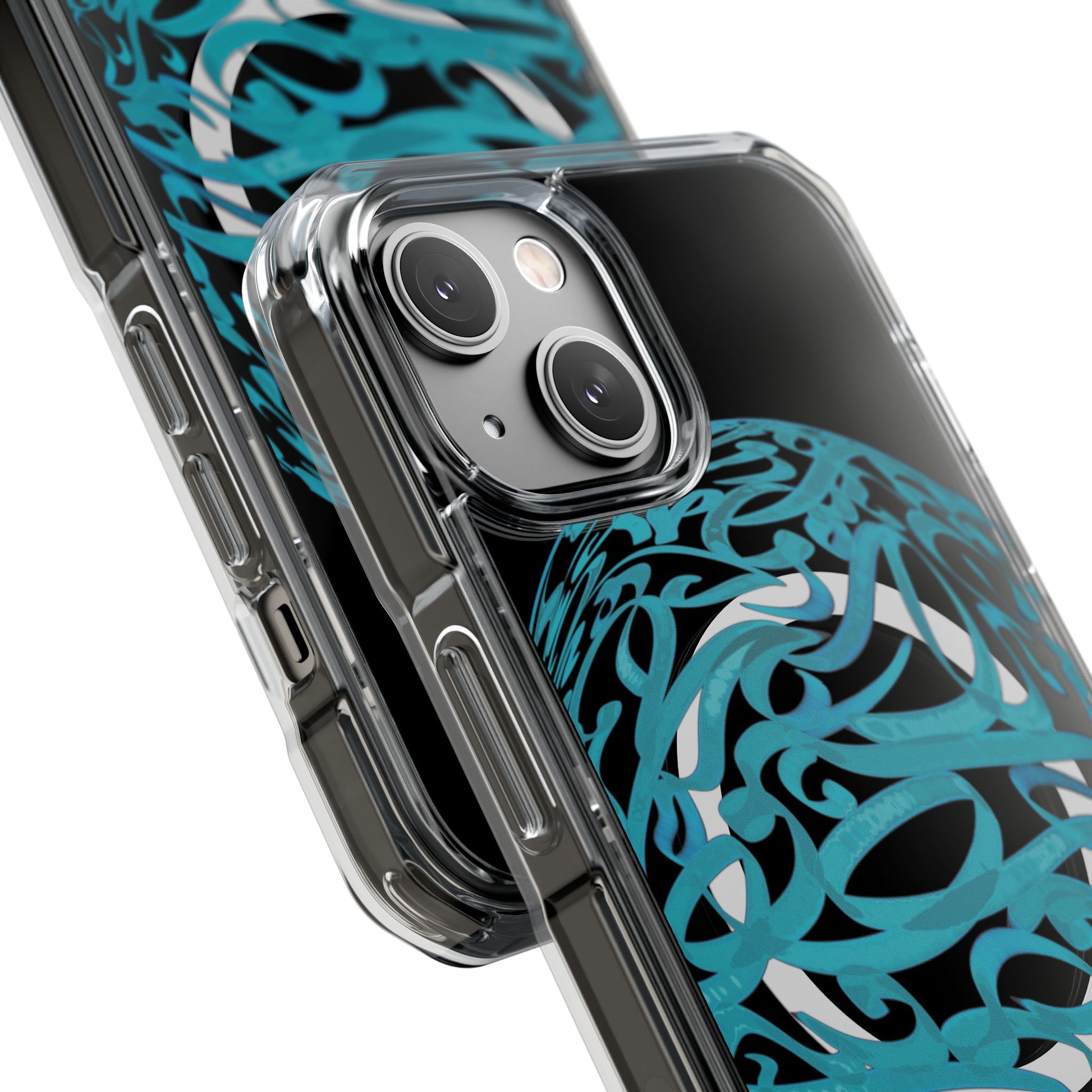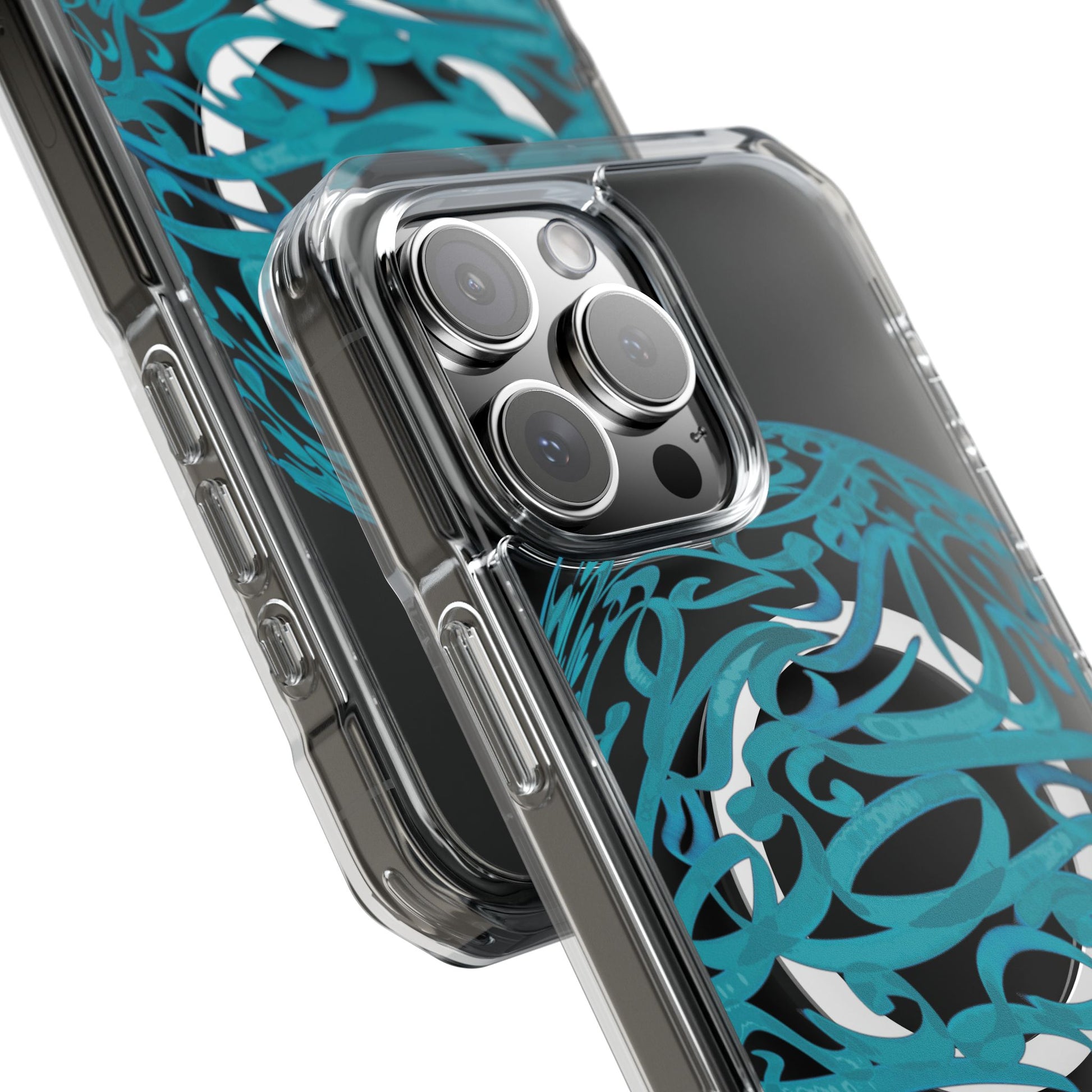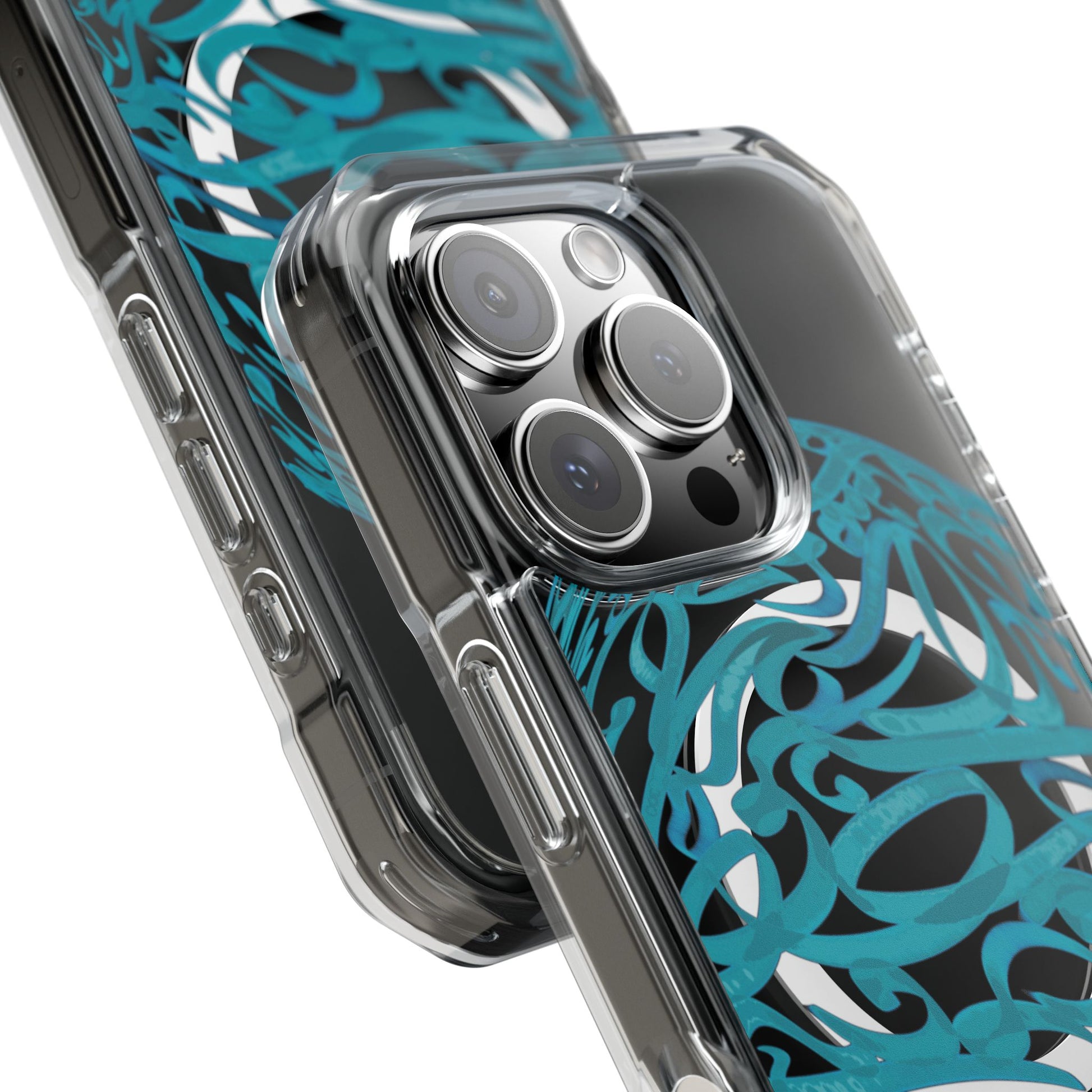 Vibrant and unique magnetic phone case with pink ribbon Persian calligraphy design. Provides elegant and subtle protection for your smartphone while also being MagSafe® compatible. Perfect for those looking for a stylish and functional case.