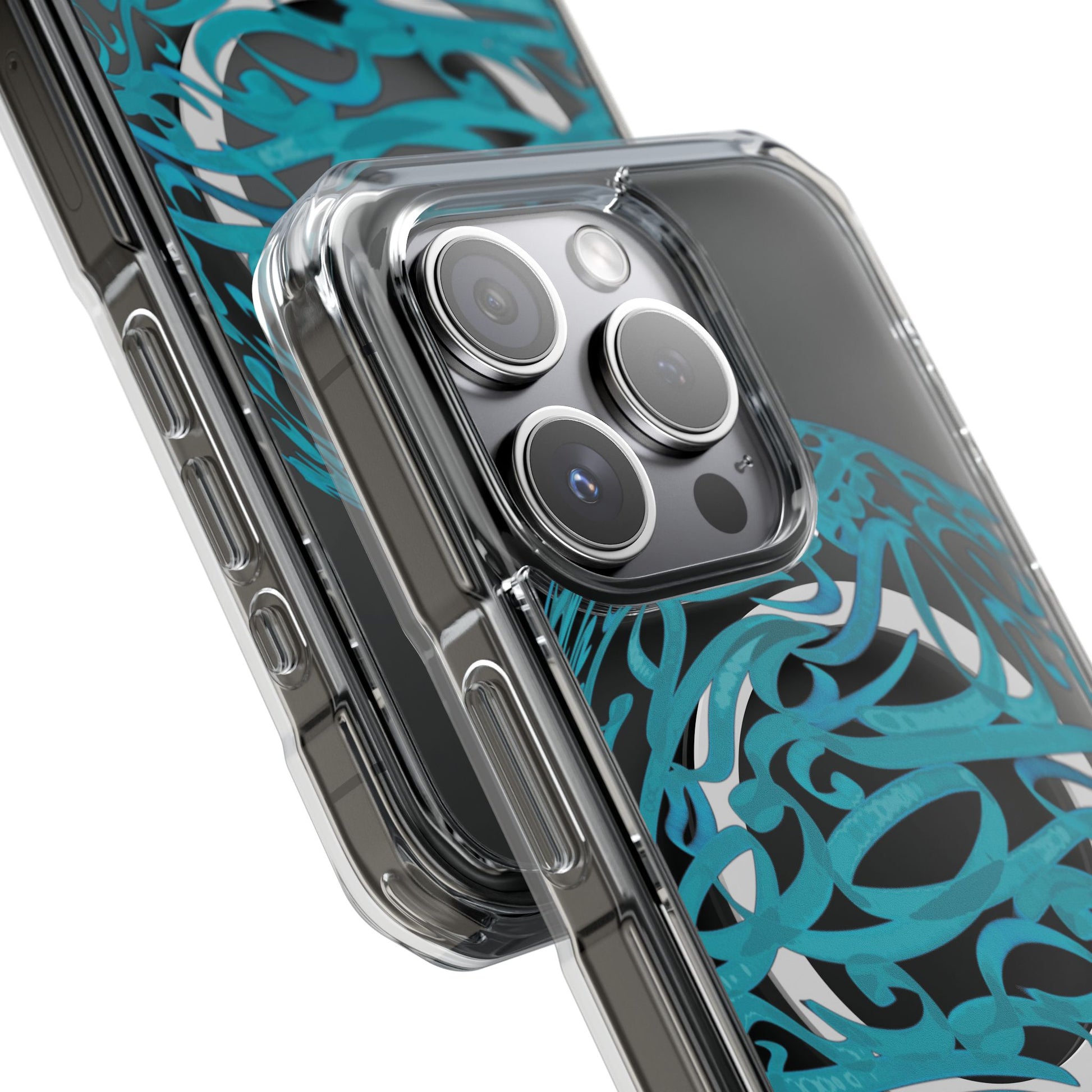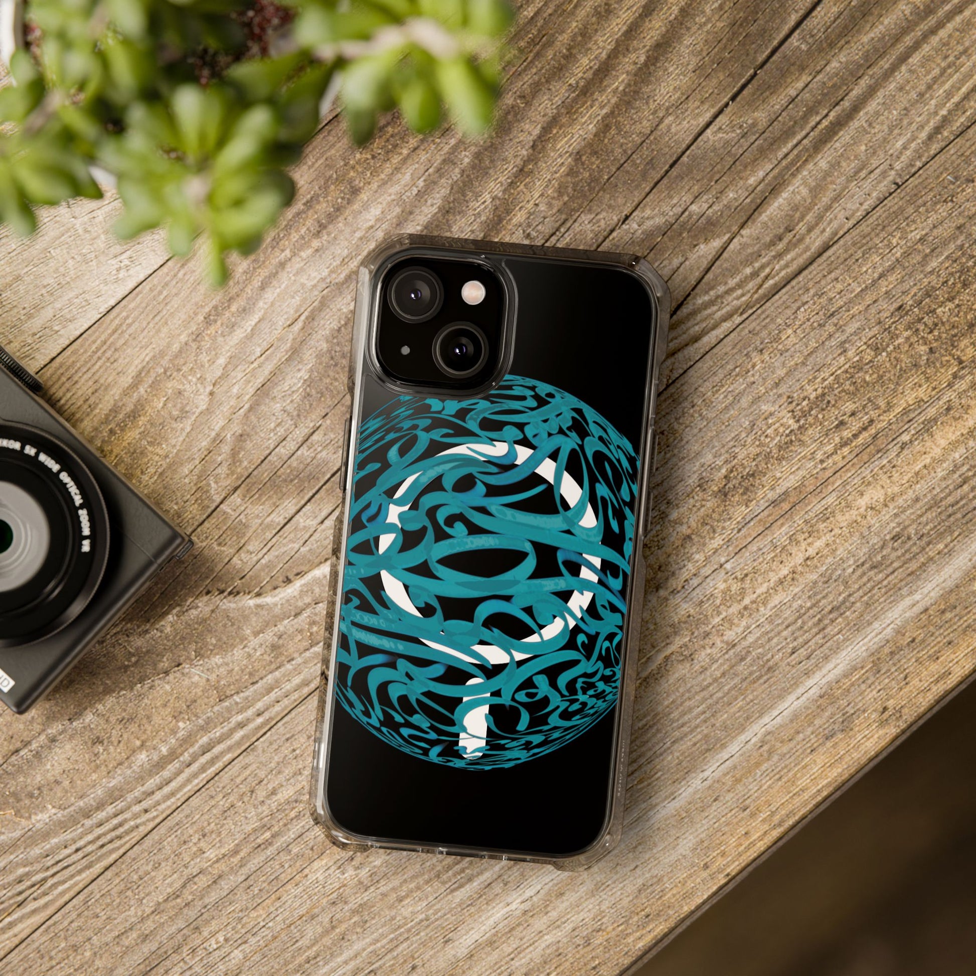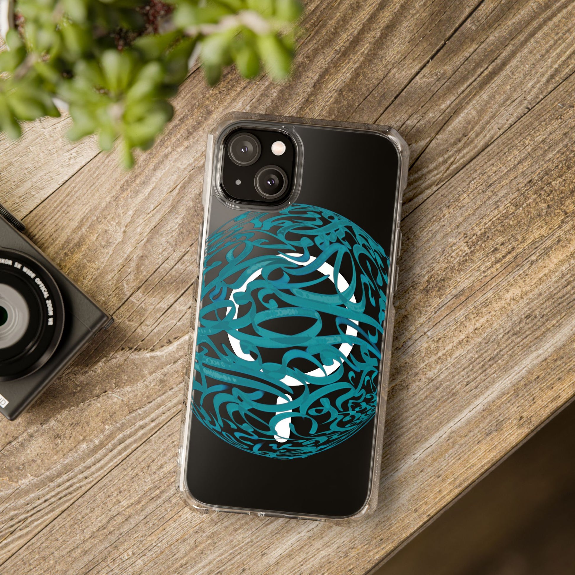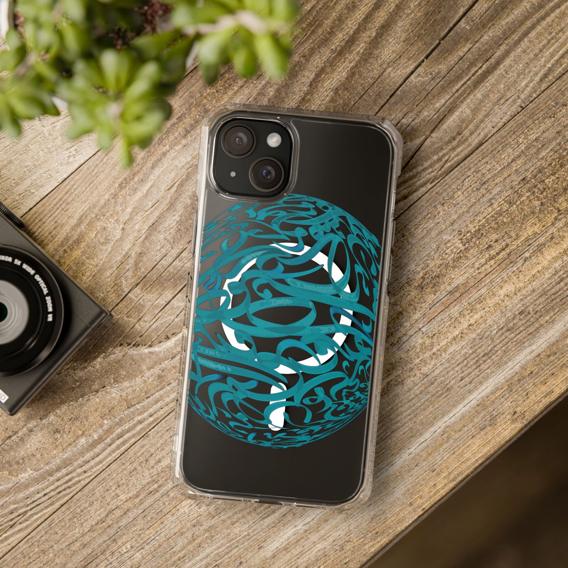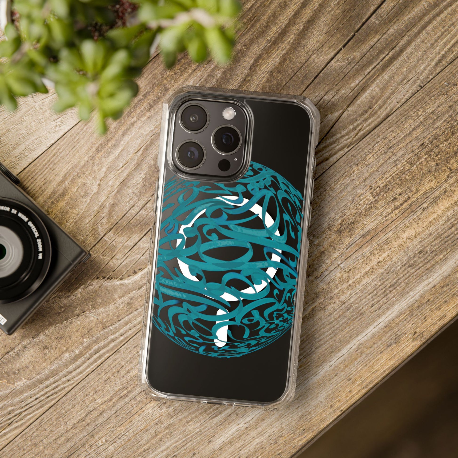 Vibrant and unique magnetic phone case with pink ribbon Persian calligraphy design. Provides elegant and subtle protection for your smartphone while also being MagSafe® compatible. Perfect for those looking for a stylish and functional case.