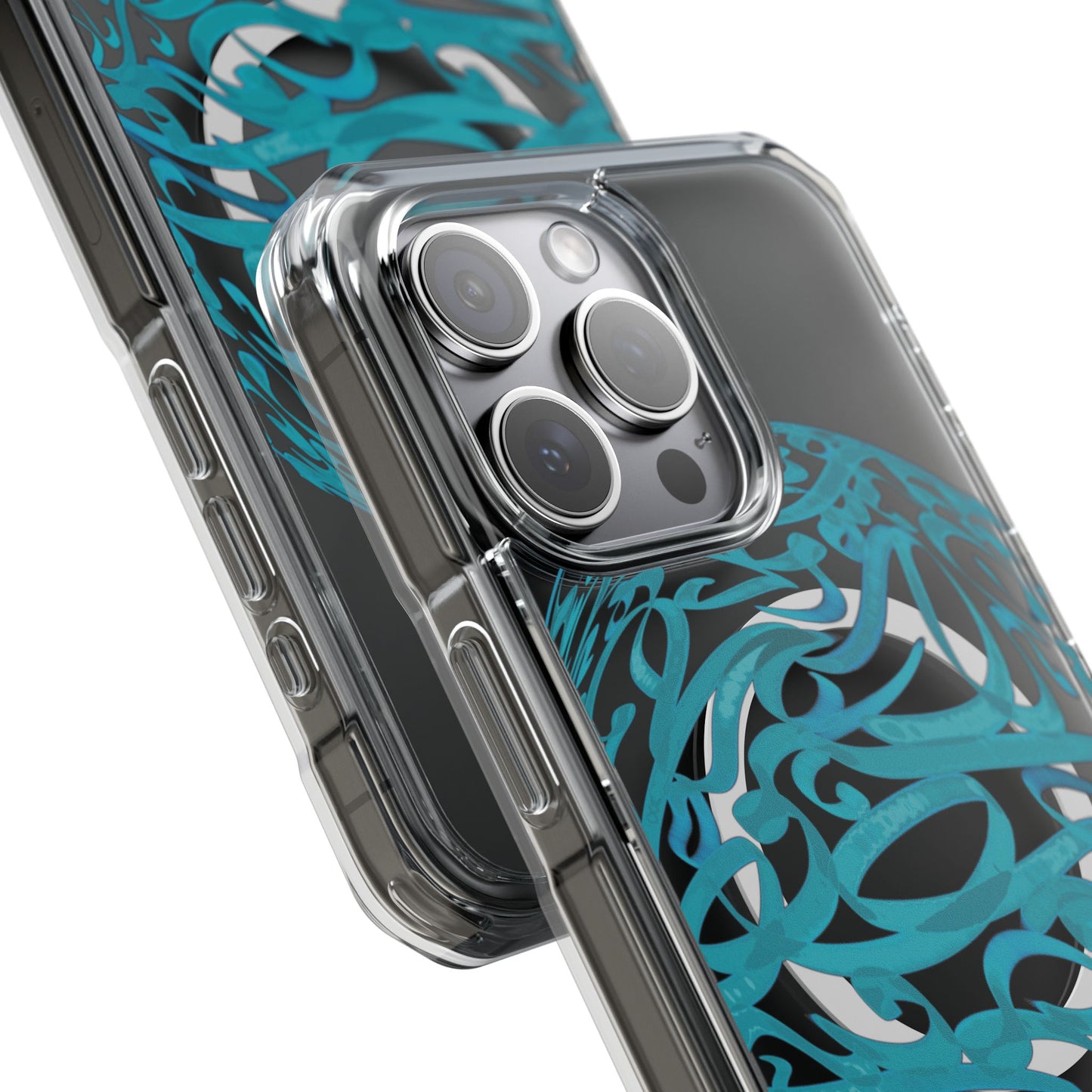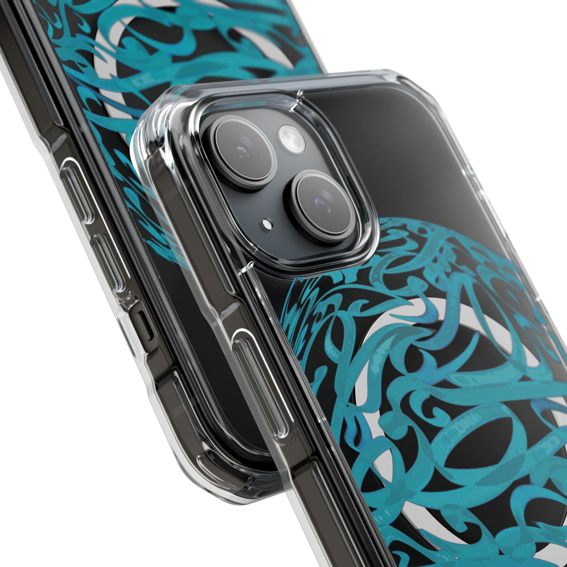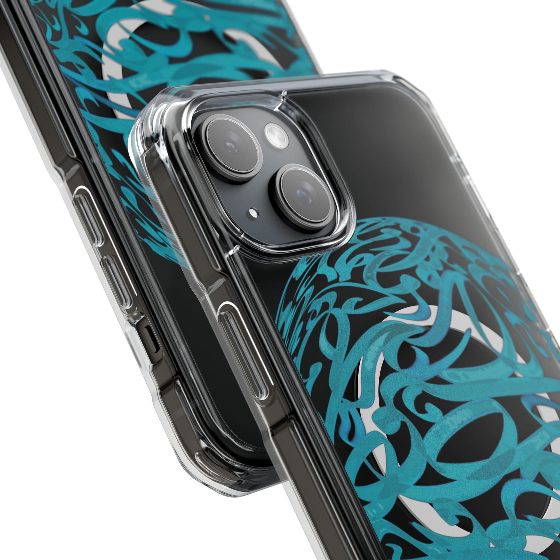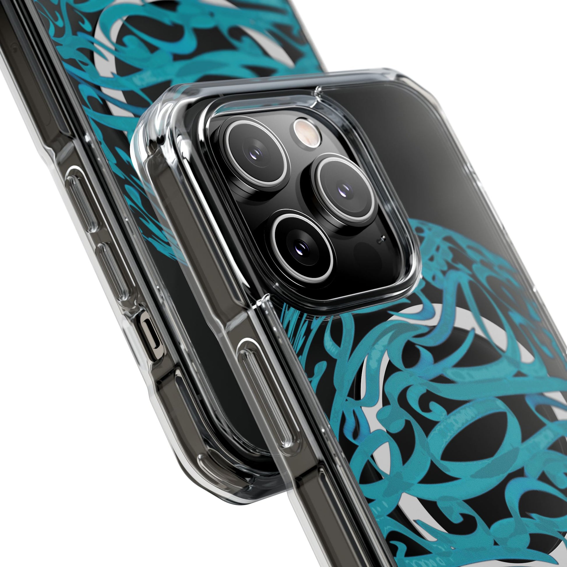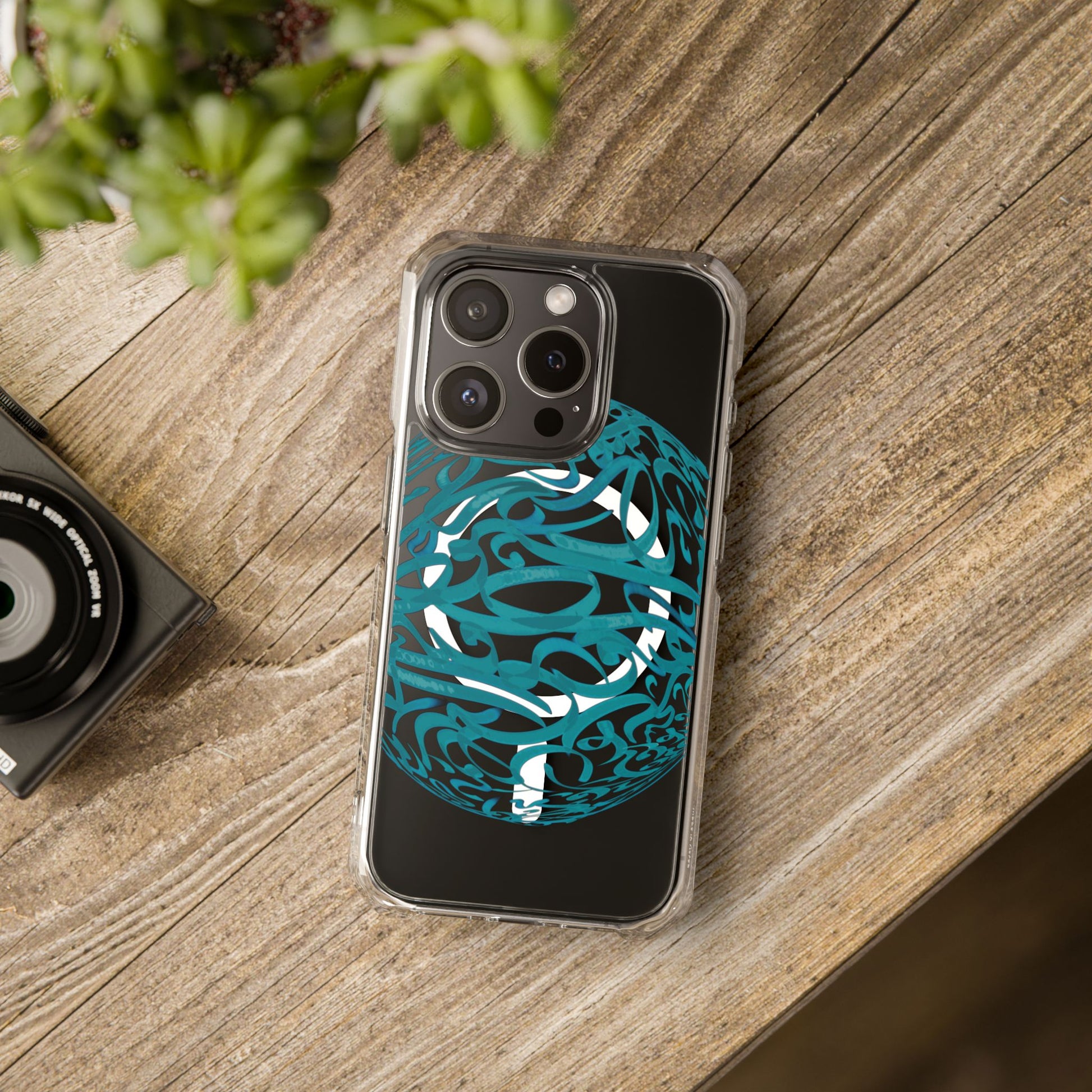 Vibrant and unique magnetic phone case with pink ribbon Persian calligraphy design. Provides elegant and subtle protection for your smartphone while also being MagSafe® compatible. Perfect for those looking for a stylish and functional case.