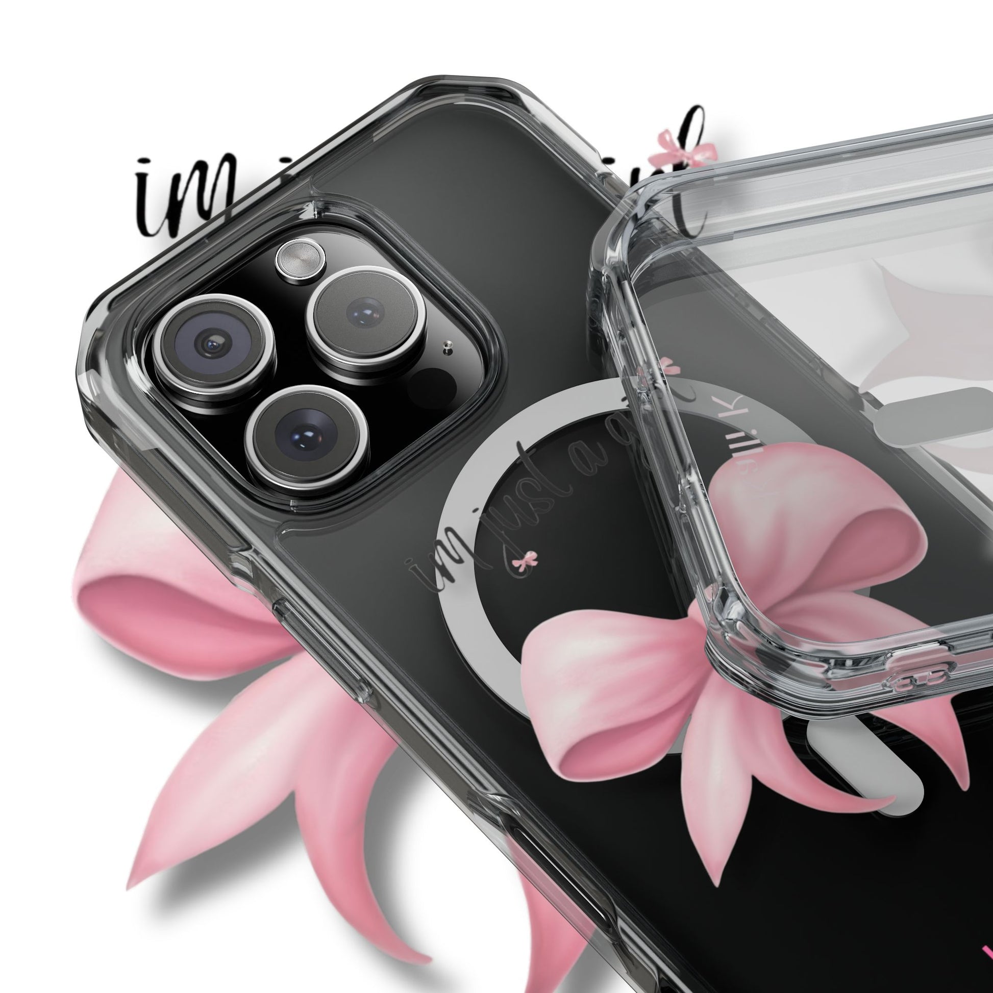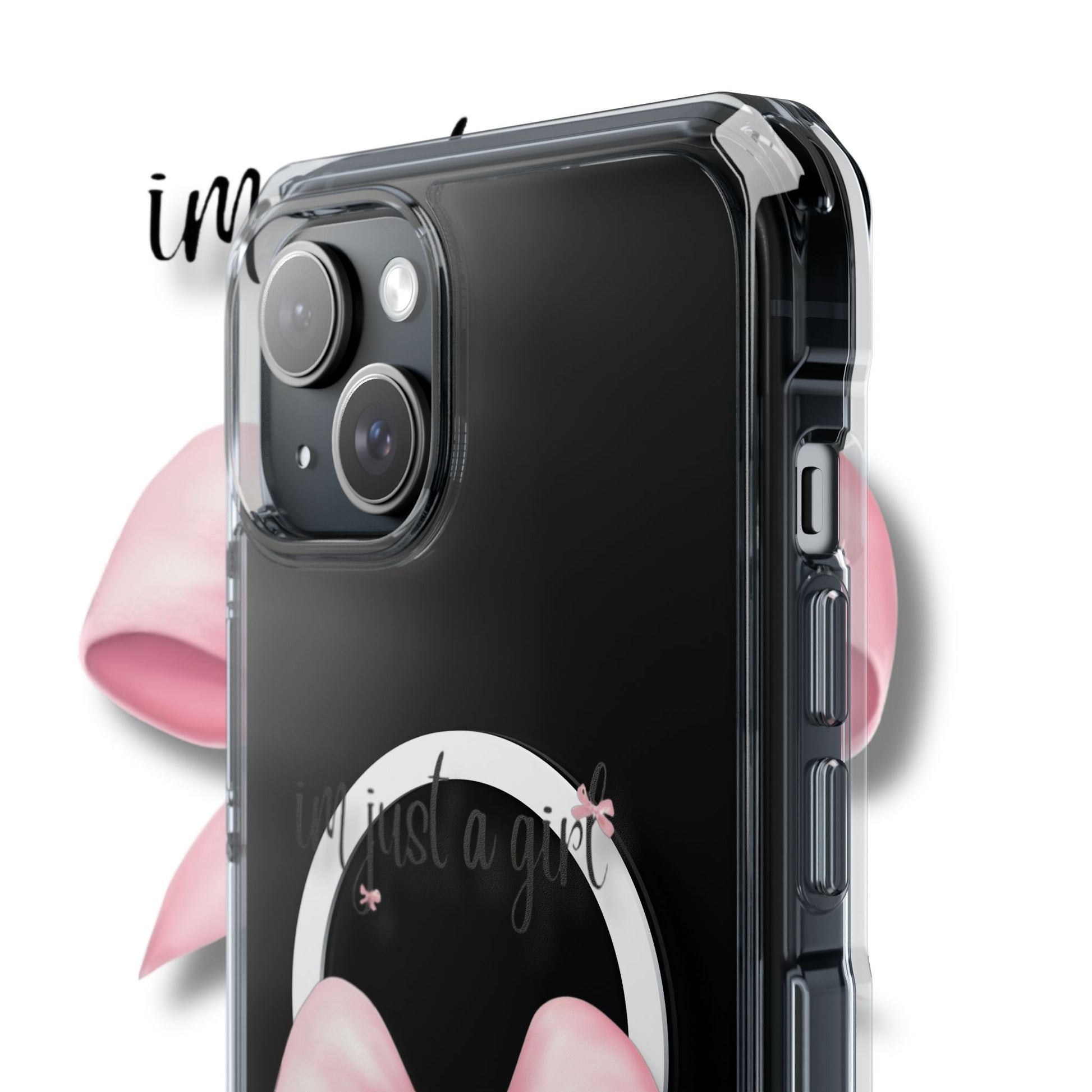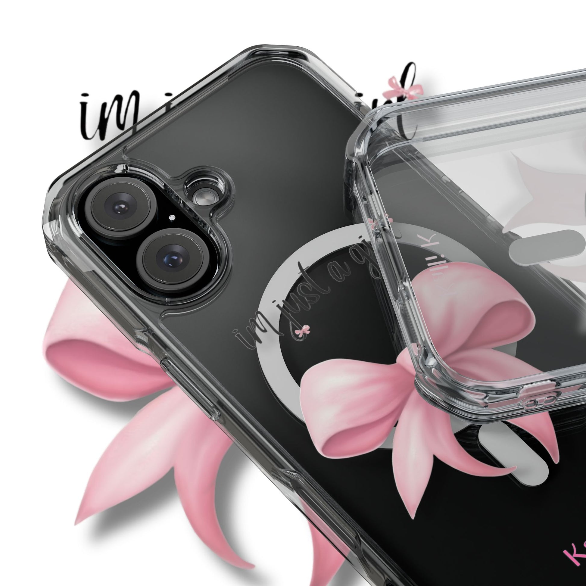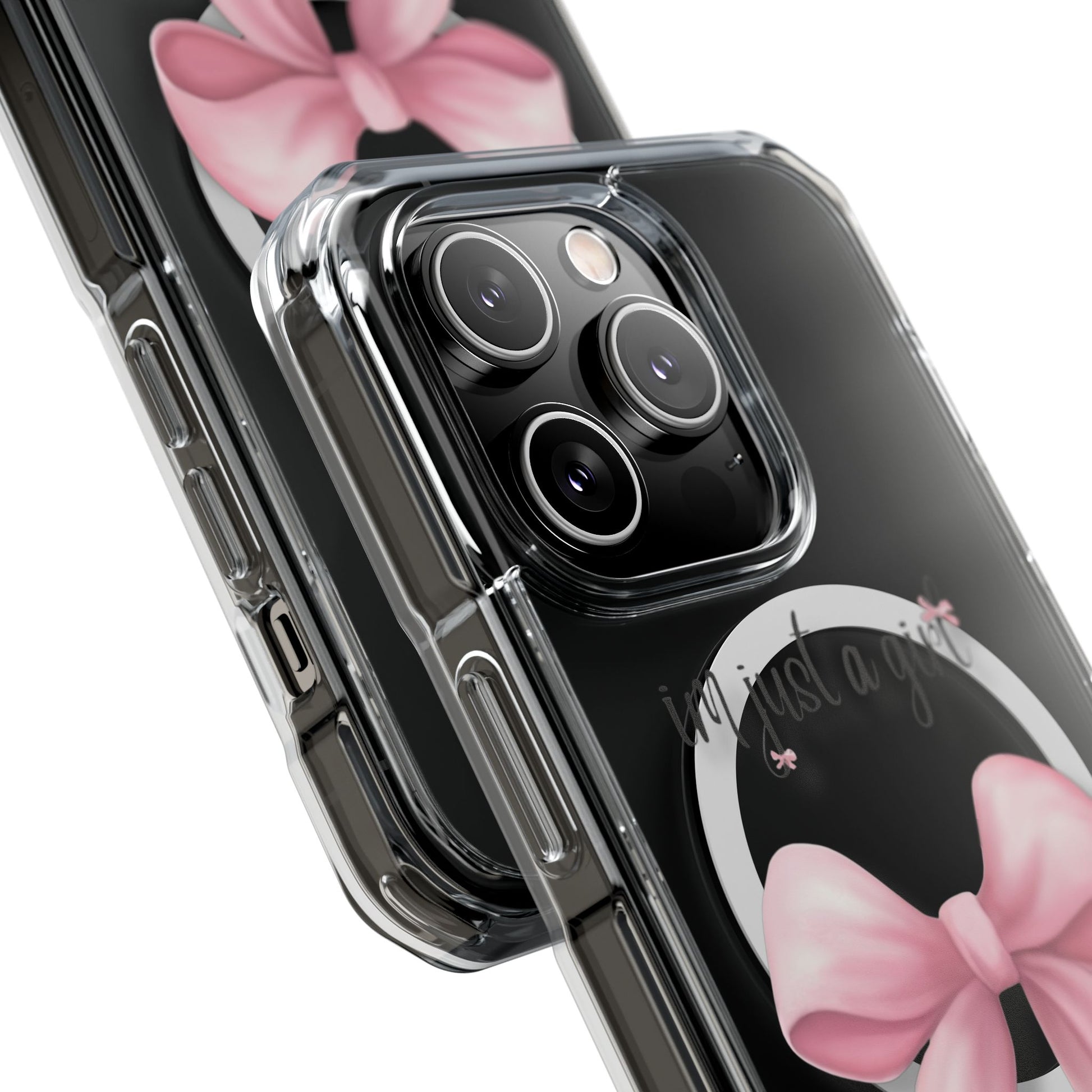 I’m just a girl🎀 Magnetic Clear Impact Cases with Pink Bow Design | Stylish Phone Protection, Gifts for Her, Trendy Accessories, Birthday Gifts, Cute Tech