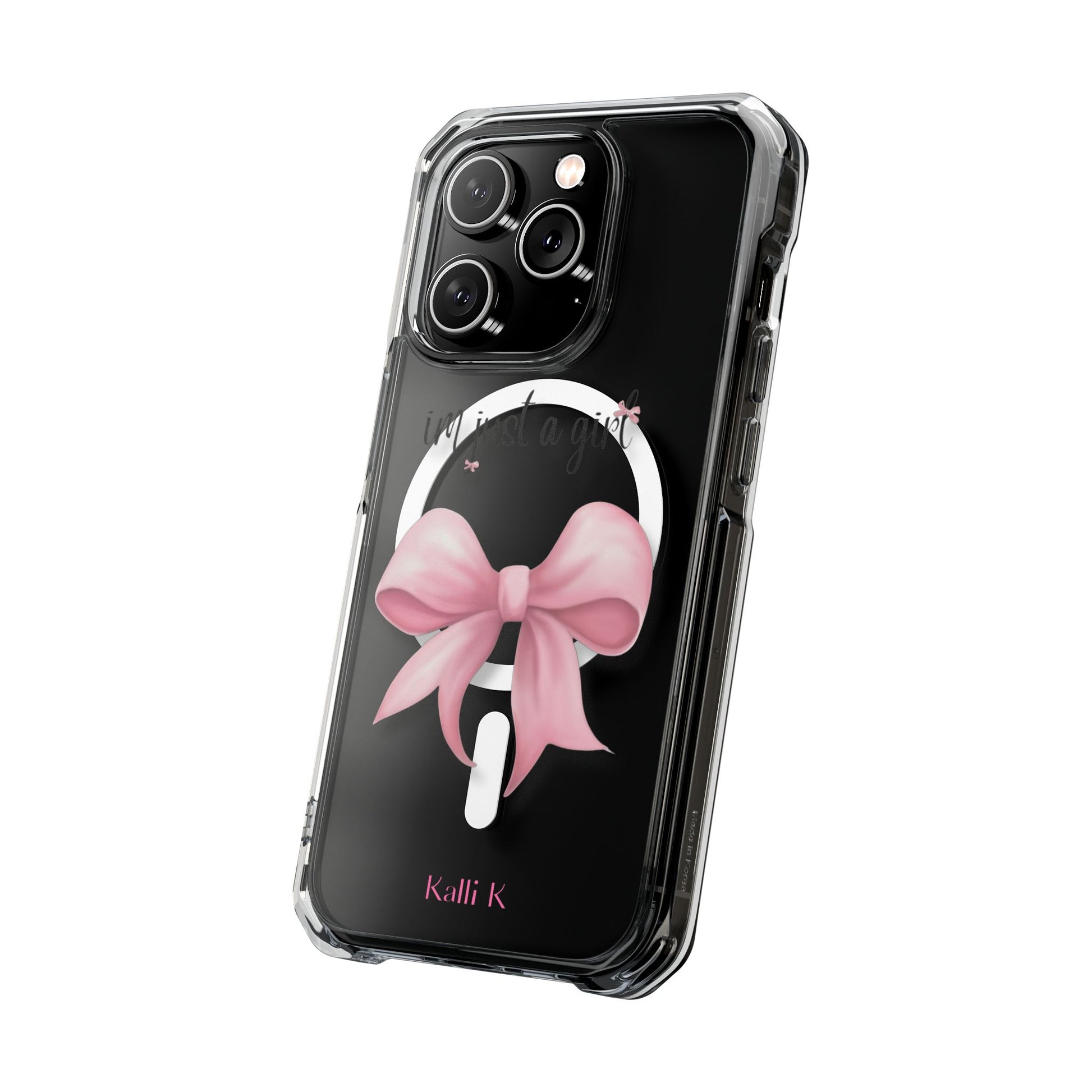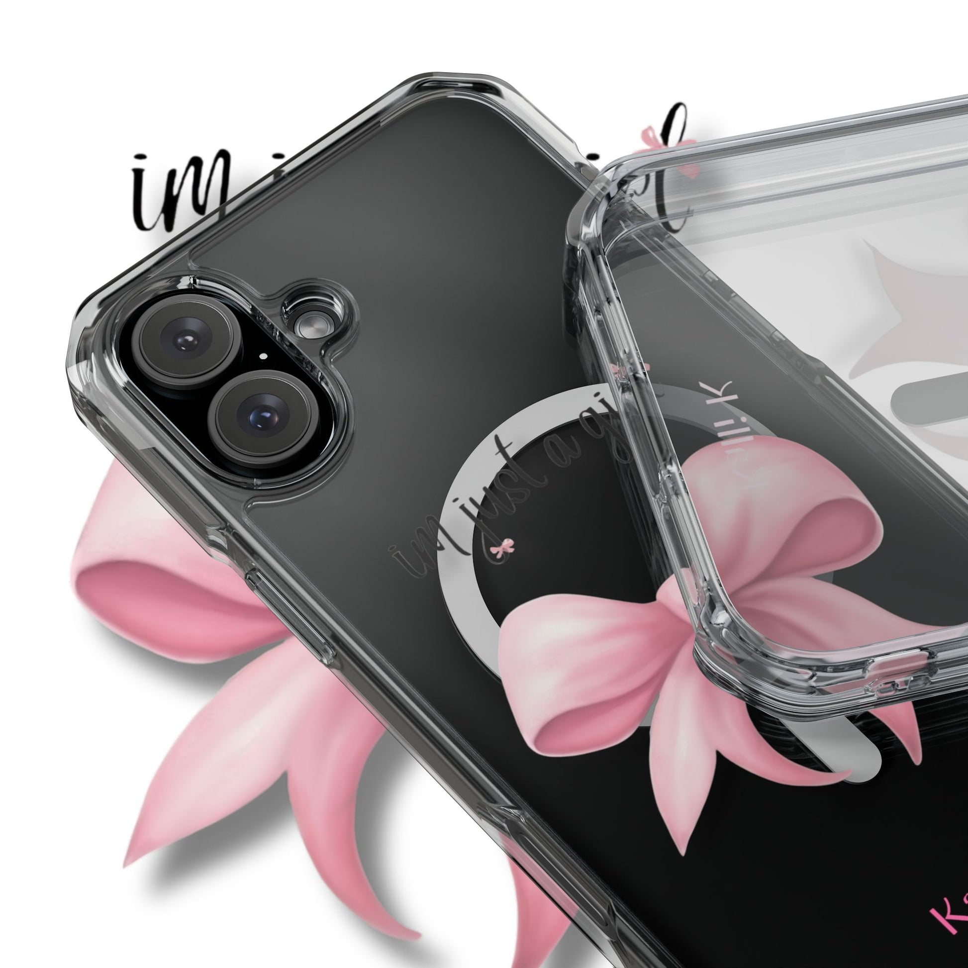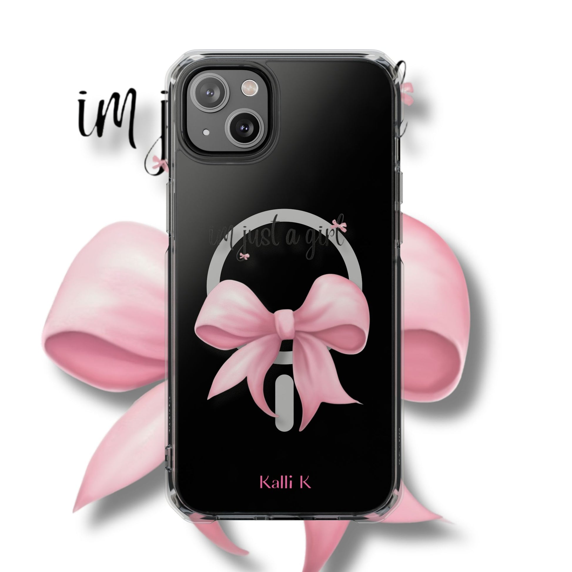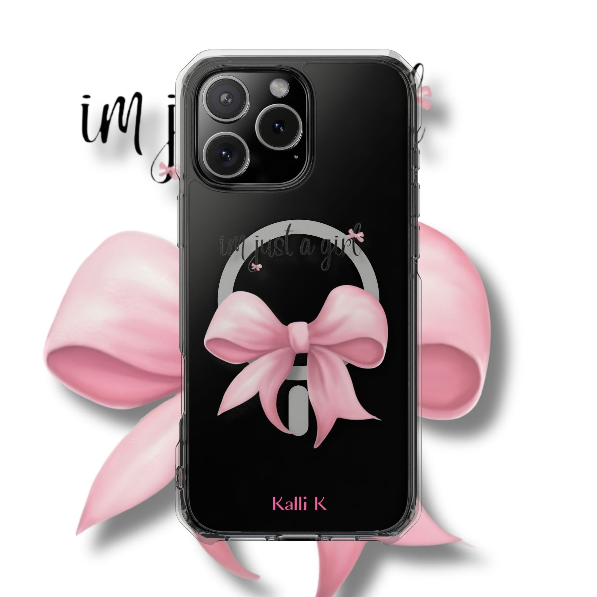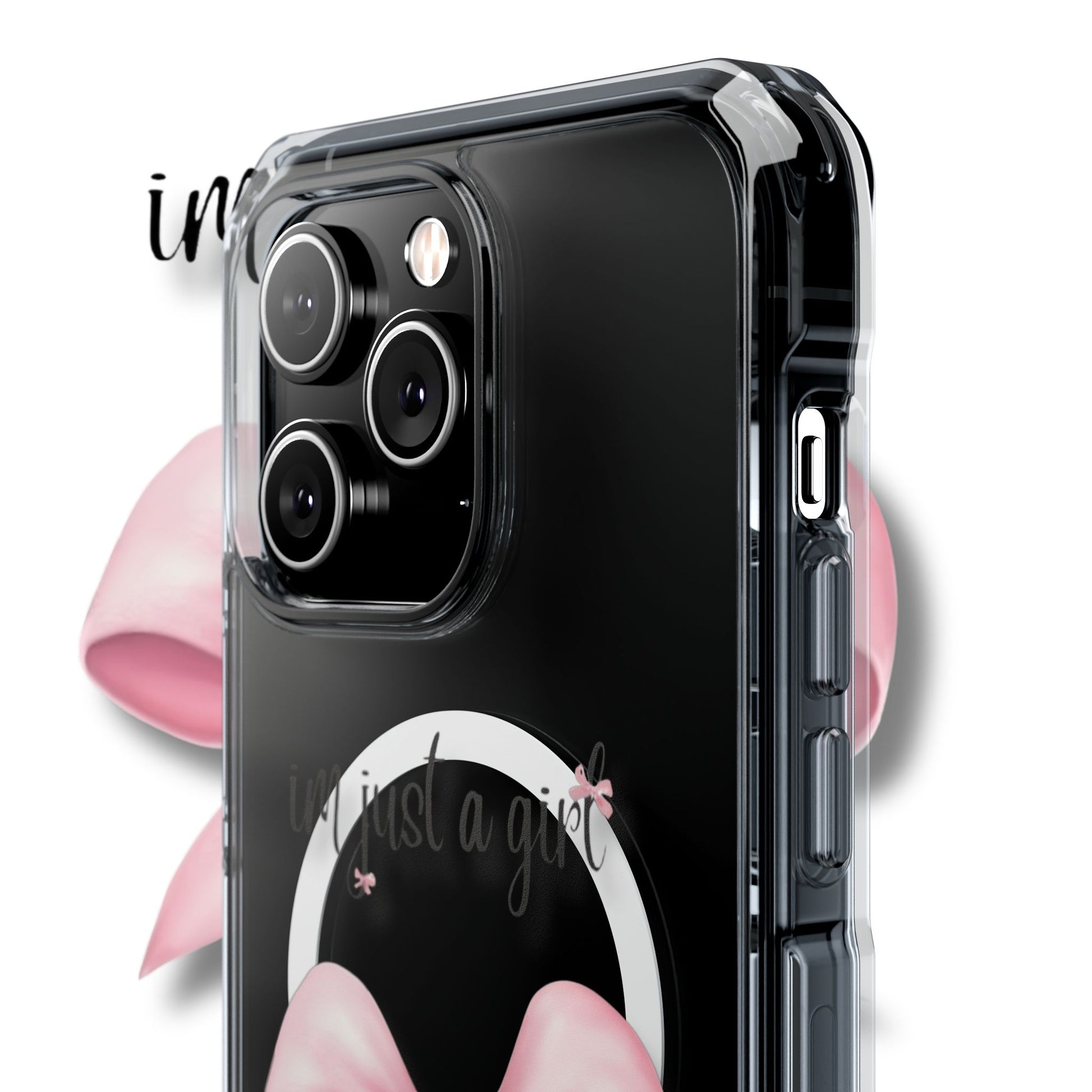 I’m just a girl🎀 Magnetic Clear Impact Cases with Pink Bow Design | Stylish Phone Protection, Gifts for Her, Trendy Accessories, Birthday Gifts, Cute Tech